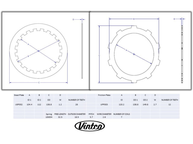 スチールプレート、フリクションプレート、スプリングのセット。【ヴィンコ (USA) リプロ品】