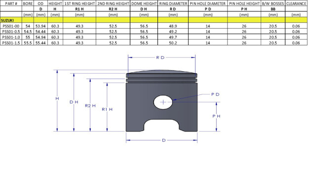 ピストン(モリブデンショット処理)、リング、小端ピン、サークリップの社外品キット。最新の技術と材質で純正品に勝るとも劣らない品質を誇ります。【ヴィンコ (USA) リプロ品】
