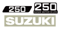 ハスラー250 9型用のタンク(左右)、サイドパネル、マフラーカバーデカールの4枚セット。タンクデカールは白のSUZUKIです。商品番号:VF110008